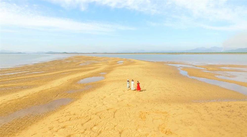 Dải cát dài 3km tạo nên bãi tắm mang vẻ đẹp hooang sơ |