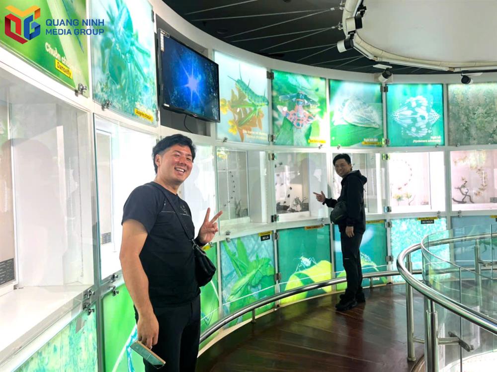 Đoàn đại diện tổ chức quản lý, vận hành tàu biển Peace Boat (Nhật Bản) thích thú tham quan Bảo tàng Quảng Ninh. |