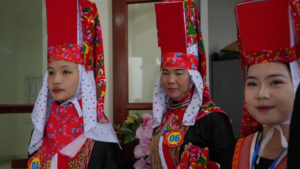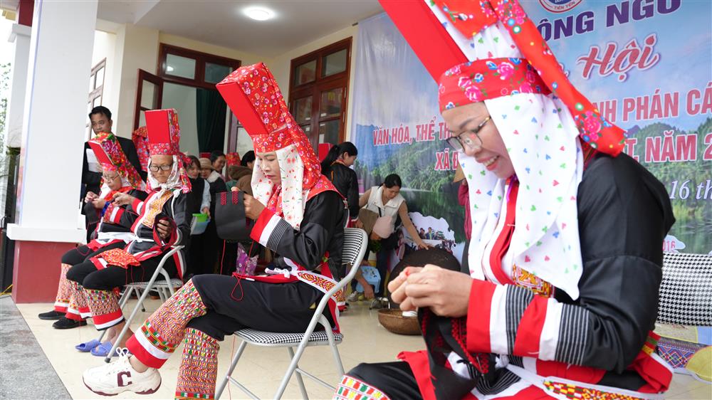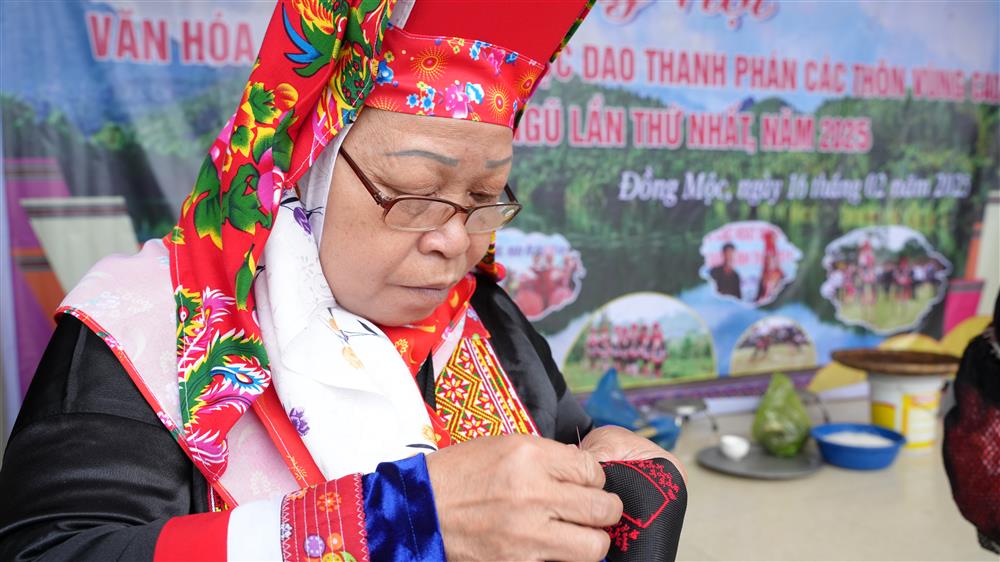 Trong lễ cưới, cô dâu Dao Thanh Phán đội thêm một chiếc khăn thêu cầu kỳ, buộc kèm những sợi chỉ đỏ và hạt cườm – biểu tượng cho sự may mắn, hạnh phúc. Việc làm một chiếc mũ truyền thống đòi hỏi tay nghề điêu luyện và sự kiên nhẫn, bởi mỗi đường thêu, mỗi lớp vải đều mang theo câu chuyện về nguồn cội.