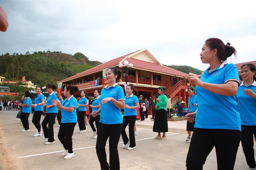 Các nhóm nhẩy dân vũ tới từ thị trấn Tiên Yên hòa mình vào không khí Lễ hội |