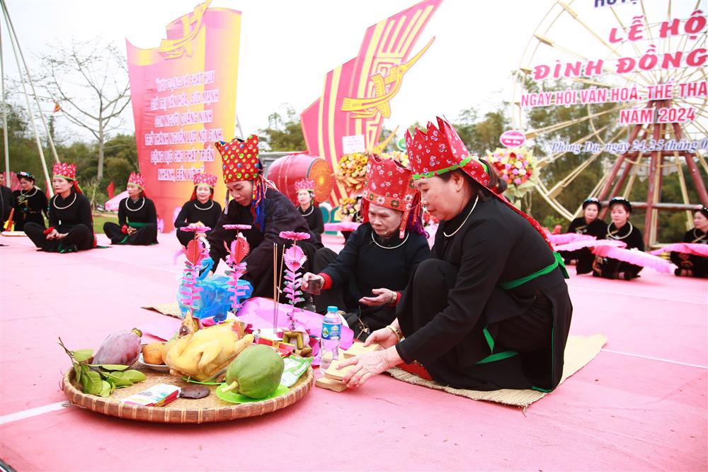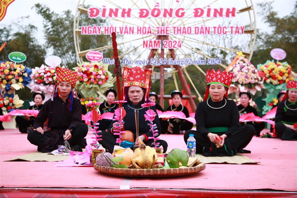 Thầy Then đang làm lễ tại Lễ hội đình Đồng Đình, ngày hội Văn hóa Thể thao dân tộc Tày năm 2024 |