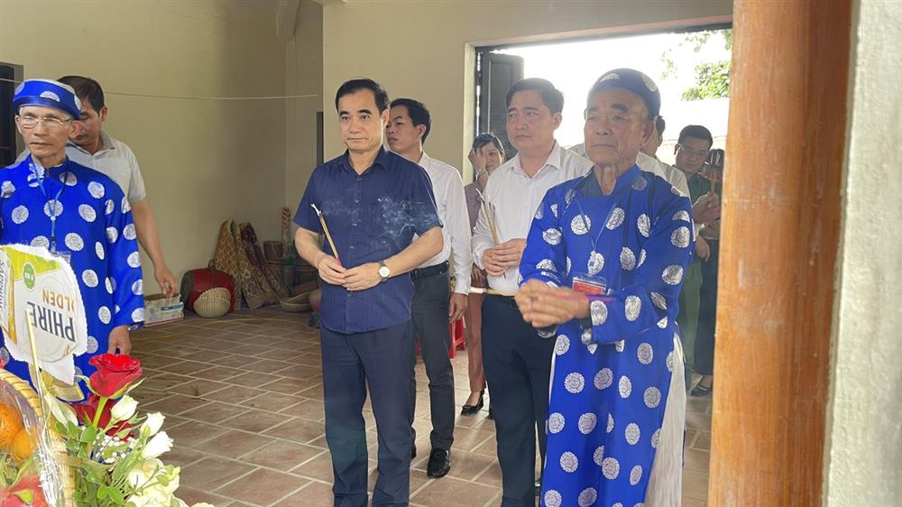 các vị cao niên và lãnh đạo huyện thắp hương báo cáo các vị thần, thổ địa |