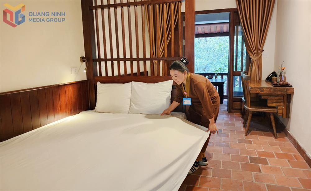 Một trong những điểm nhấn của Làng Nương Yên Tử là dịch vụ nghỉ dưỡng qua đêm. Với hệ thống 11 tòa nhà, 95 phòng nghỉ, Làng Nương mang đến một không gian vừa hiện đại vừa gần gũi thiên nhiên. Năm 2025 nơi đây tiếp tục mở rộng thêm nhiều lựa chọn nghỉ dưỡng. Phòng tiêu chuẩn 2 giường đơn mới đưa vào hoạt động, phù hợp cho du khách thích sự riêng tư. Phòng “tổ kén” dành cho 4 người, thiết kế sáng tạo, mang lại không gian vừa riêng tư vừa ấm cúng. Phòng 8 giường phù hợp với nhóm du lịch đông người, tạo sự gắn kết trong hành trình khám phá. Anh Nguyễn Quang Dương (TP Hải Phòng) chia sẻ: “Đây là lần đầu tiên tôi nghỉ qua đêm tại Làng Nương. Không gian nơi đây thực sự rất tuyệt vời, yên tĩnh, trong lành và đầy đủ tiện nghi”.