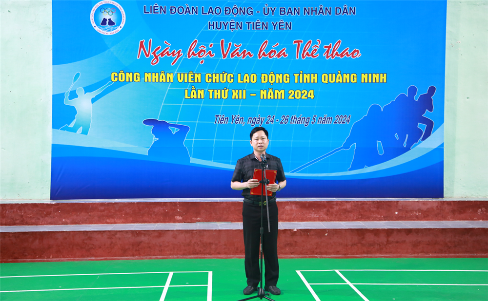 Ngày 25/5, LĐLĐ tỉnh Quảng Ninh phối hợp với UBND huyện Tiên Yên tổ chức khai mạc “Ngày hội Văn hóa Thể thao công nhân viên chức lao động, lần thứ XII - năm 2024”. Đến dự khai mạc Ngày hội có các đồng chí: Hoàng Thị Hồng Phấn, Phó Chủ tịch LĐLĐ tỉnh,;đồng chí Hoàng Mạnh Hưng, Phó Bí thư Thường trực Huyện ủy; Phạm Văn Hoài, Phó Chủ tịch Thường trực UBND huyện.