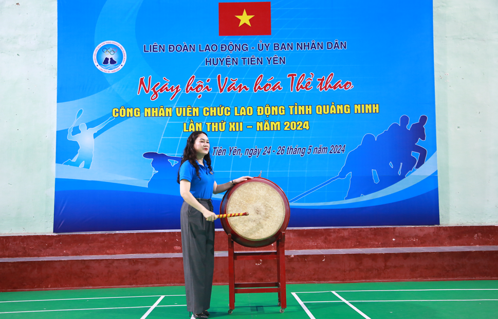 Đồng chí Hoàng thị Hồng Phấn, Phó Chủ tịch LĐLĐ tỉnh Quảng Ninh gióng trống khai mạc ngày hội |