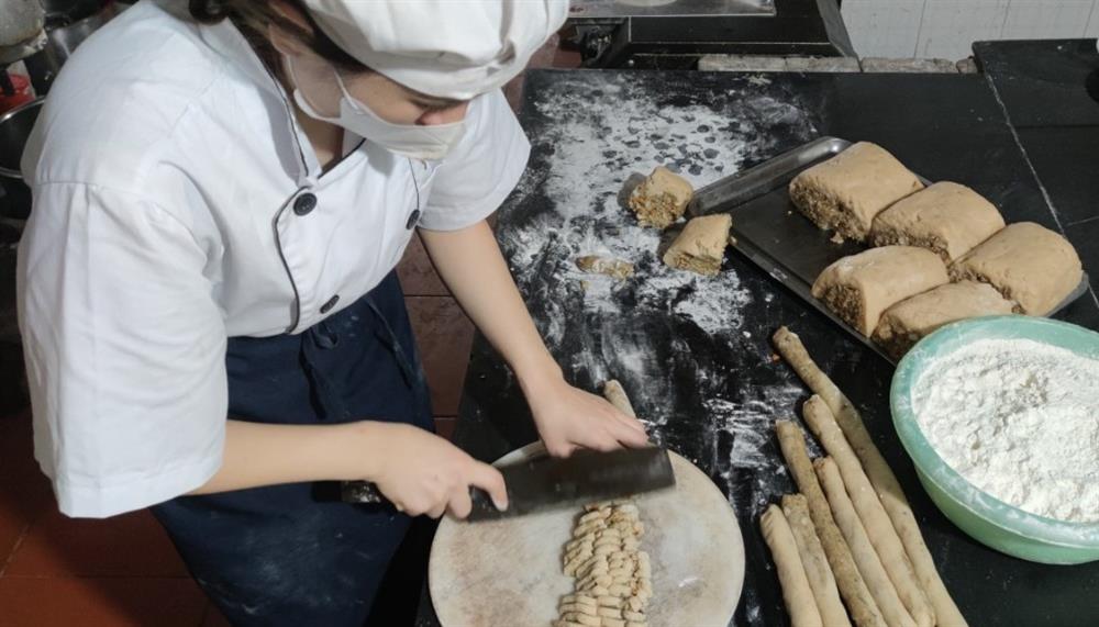 Nhìn những chiếu bánh nhỏ xinh tưởng chừng đơn giản, nhưng đòi hỏi sự khéo léo, kiên trì, cẩn trọng với cả niềm đam mê. Từ việc đong đếm nguyên liệu sao cho vừa đủ, đến việc nhào bột, nặn, cắt bánh sao cho đều tay, không bị vụn, canh thời gian nướng sao cho bánh chín tới, đủ giòn mà không bị cháy.