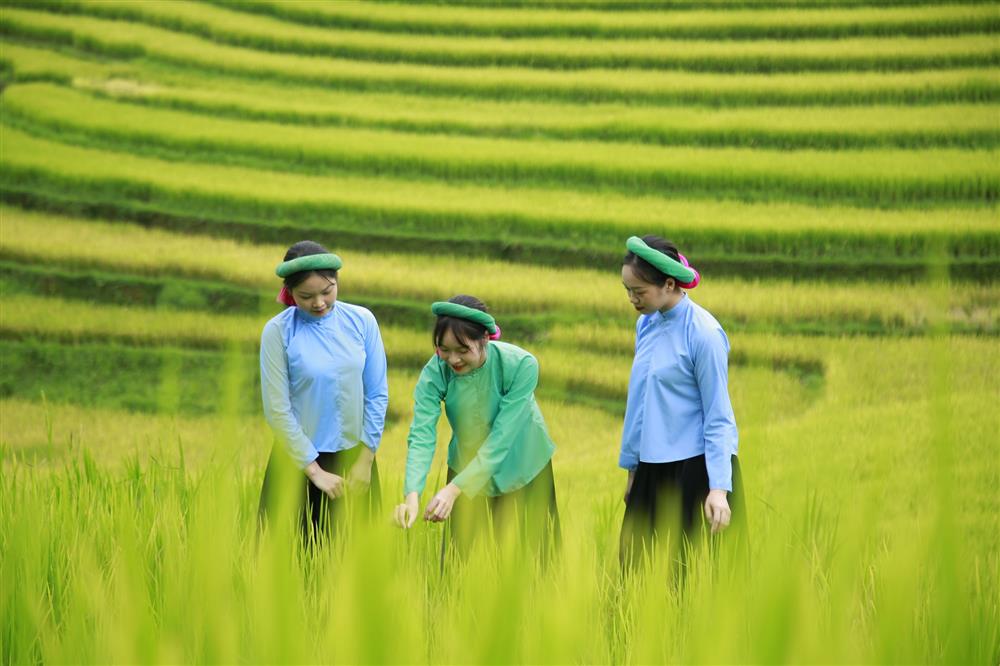Vào mùa lúa chín vàng từ trung tuần tháng 10 đến hết tháng 11 trong năm những thửa ruộng bậc thang vàng óng được các chàng trai, cô gái trong những bộ trang phục truyền thống của người Sán Chỉ lại ghi lại những khoảnh khắc đẹp làm say đắm lòng người. |